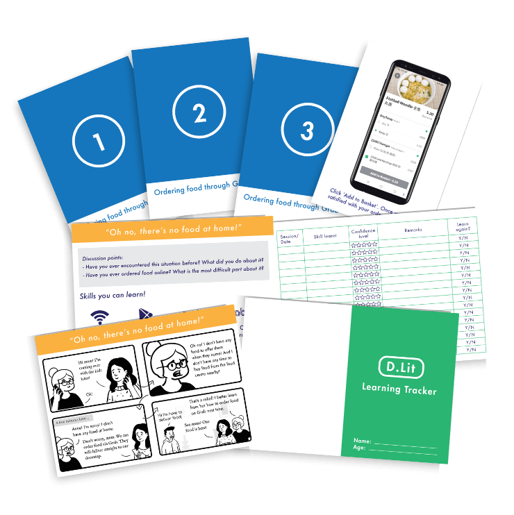 D.Lit (short for ‘Digital Literacy’) is a fun and interactive toolkit for the elderly to learn how to use their mobile phones and gain digital confidence. D.Lit comes in the form of easy-to-read sized cards with clear graphics.